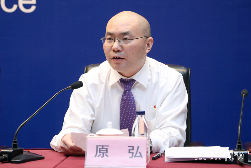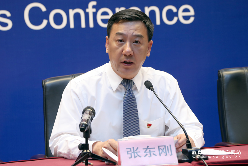 教育部思想政治工作司司长张东刚介绍实施基层党建质量提升攻坚行动、写好高校党建工作“奋进之笔”有关情况。(中国教育报记者 张劲松/摄)