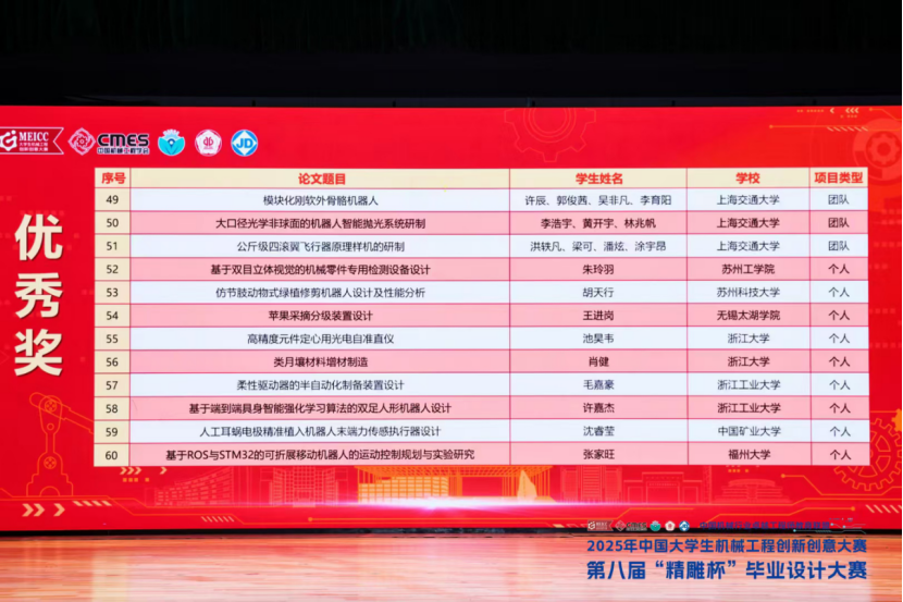 2025年6月2日,由中国机械工程学会、中国机械行业卓越工程师教育联盟主办的 2025年中国大学生机械工程创新创意大赛·第八届“精雕杯”毕业设计大赛全国总决赛在广东工业大学圆满落幕。
