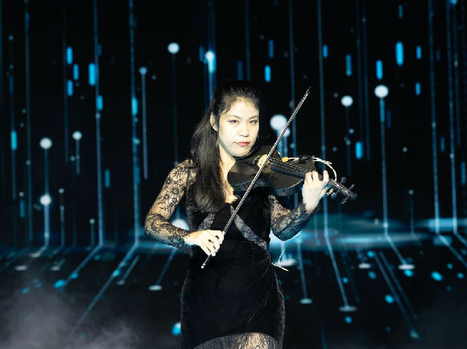 小提琴独奏深情上演,演奏者以精湛的技艺,将这首经典曲目演绎得动人心弦,与现场的新中式风格新品相得益彰。