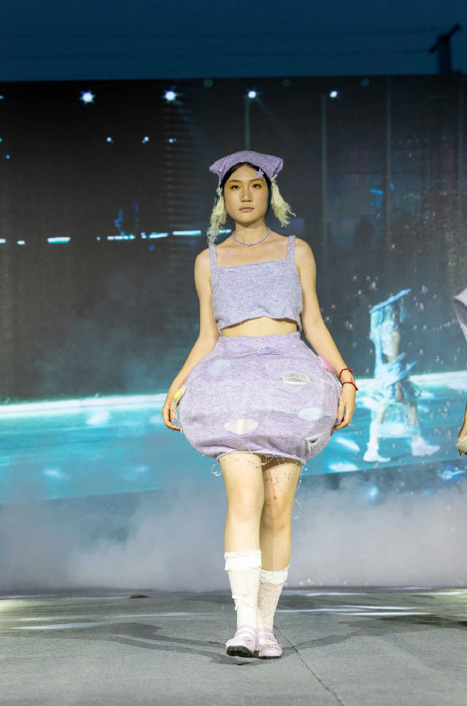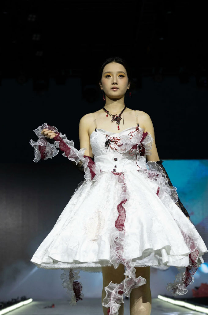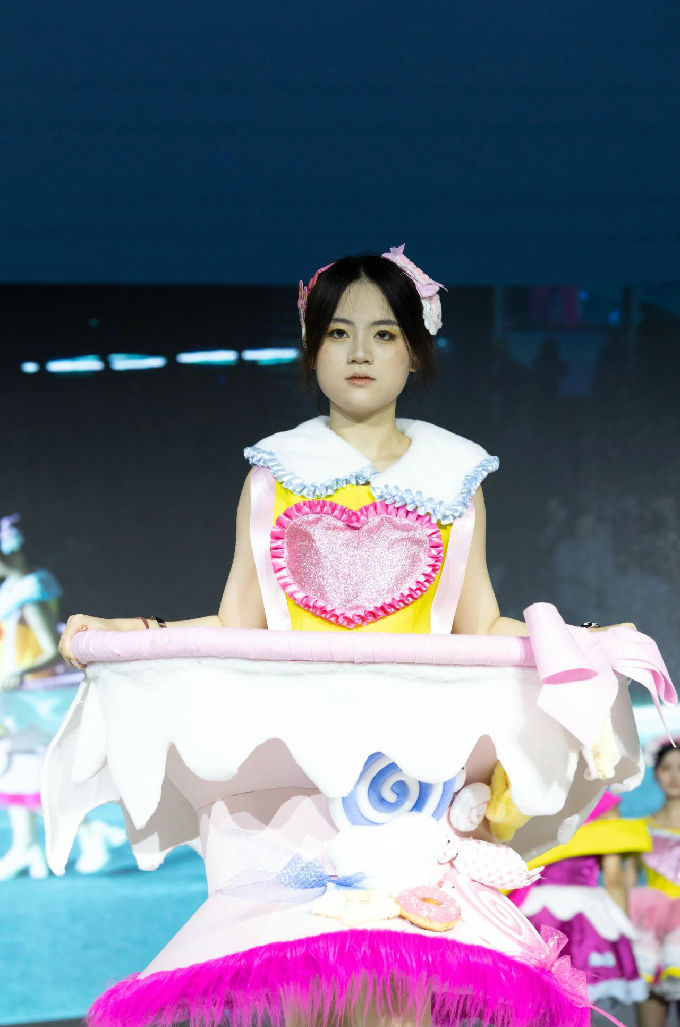 走进第一篇章“霓虹跃动”,我们仿佛进入了一个充满幻想的世界。当软萌元素邂逅时尚剪裁,一系列融合二次元与温柔风格的服装作品逐一亮相。这些作品不仅展现了设计师们的才华与 创意,更体现了太湖学院艺术学院对时尚潮流的敏锐洞察。