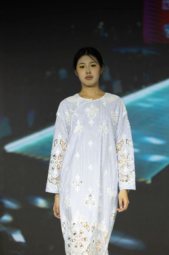 如果说第一篇章是时尚的碰撞与融合,那么第二篇章“民族新韵”则是对传统文化的致敬与传承。在这里,我们看到了传统纹样与现代设计的完美结合,非遗技艺与时尚表达的巧妙融入,彰显了我国民族文化的博大精深与独特魅力。每一件华服都仿佛在诉说着一个个动人的故事,让观众在欣赏美的同时,也感受到了文化的厚重与温度。