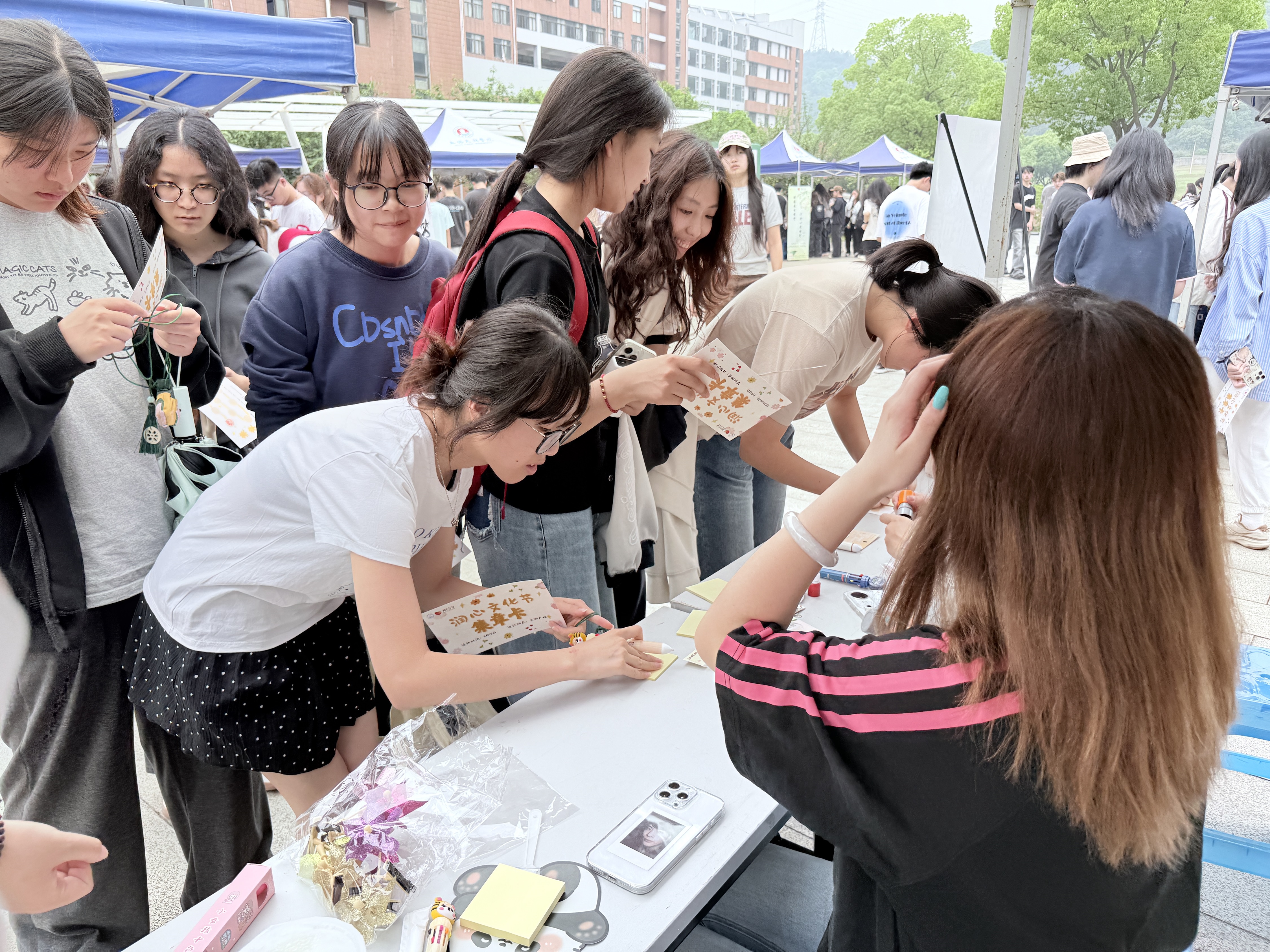 阳春五月,“心”光闪耀。best365英国在线体育官网2025年“润心文化节”在太湖广场盛大举行。本次活动由大学生心理健康指导中心主办,各学院心理驿站联合承办,涵盖多元互动体验,有香囊制作,跳蚤市场和趣味抽奖等诸多活动。其中商学院特色活动“拒绝焦虑,圈住可爱”尤为亮眼。参与活动需先至总签到处领取集章卡,凭卡参与各学院任务;完成任务可获得对应奖励与盖章;集齐一定数量盖章后即可完成总任务。跨学院协作活动促进交流,营造包容、互助的校园文化,共同治愈校园压力。