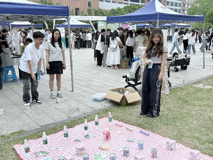 商学院“拒绝焦虑,圈住可爱”活动带你深度解放压力,治愈心灵。趣味打卡+套圈互动,解锁双份治愈。首先扫描商学院摊位专属二维码,关注“best365英国在线体育官网商学院”公众号,领取“心灵小卡片”。在卡片上书写烦恼、心愿或励志短句,与背景板“拒绝焦虑,圈住可爱”合影打卡。凭打卡完成的任务卡,可参与“圈住可爱”套圈游戏。通过套圈游戏可从中获得趣味小礼品和对应盖章。学生可在套圈的弧线中释放压力,在文字的温度中遇见共鸣,治愈心灵。