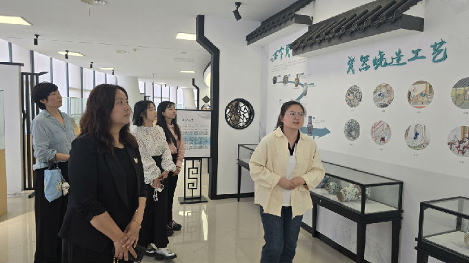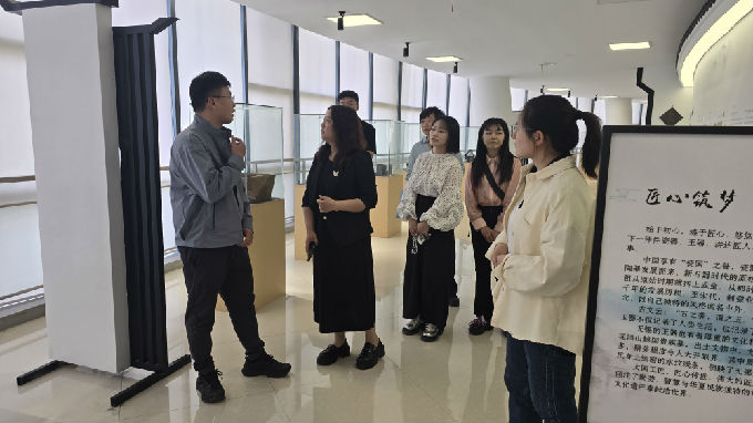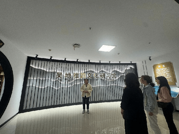 最后,交流团一行还参观了无锡学院图书馆内的吴地雅韵文化研习馆,该馆集中展示了无锡地区丰富的非物质文化遗产资源,包括惠山泥人、无锡精微绣、宜兴均陶、留青竹刻等传统工艺。通过现场观摩与讲解,深刻感受到吴地文化的独特魅力,也进一步体会到艺术教育与非遗传承的融合价值。