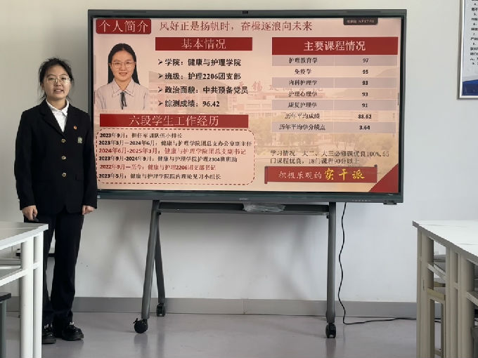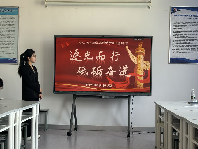 以德为先展风采,笃行致远树标杆。答辩会现场,候选人通过PPT展示、个人陈述等形式,围绕思想品德、学业成绩、社会实践、班级管理、志愿服务等方面展开汇报。他们中既有在专业学习中名列前茅的“学术先锋”,也有带领班级获奖的学生干部代表,更有投身志愿服务的典型人物。