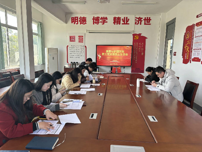 2025年3月18日下午3点,健康与护理学院教工党支部在学院二楼会议室召开2025年度民主生活会。会议由教工党支部书记詹雪丽主持,党总支副书记胡宇及其他党员参会,围绕加强党性修养、推进支部建设主题展开深入交流,圆满完成各项议程。