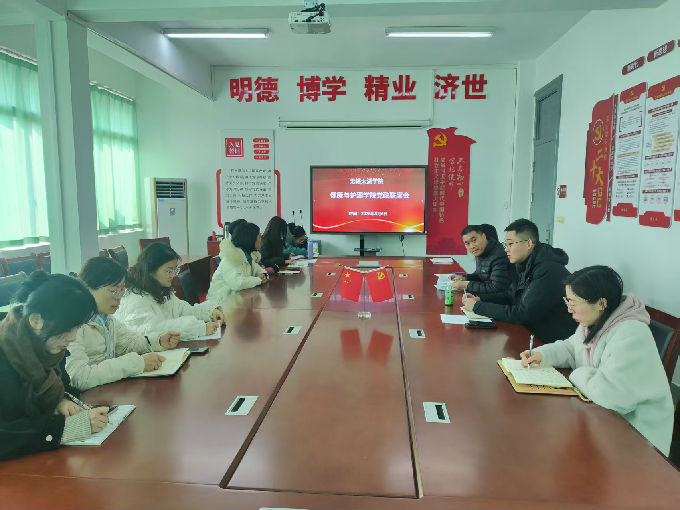 凝心聚力谋发展,砥砺奋进谱新篇。为深入学习习近平新时代中国特色社会主义思想,2025年3月6日健康与护理学院在5号楼二楼会议室召开第一次党政联席会,会议旨在总结近期工作,分析当前形势,明确下一步工作方向。学院党总支副书记胡宇、副院长宋绍征、院长助理杨小仙,系主任、学院督导、教学秘书、科研秘书出席会议,会议由副院长宋绍征、党总支副书记胡宇主持,简要回顾了党政联席扩大会的主要决议及执行情况,并强调本次会议的重要性及主要议题。