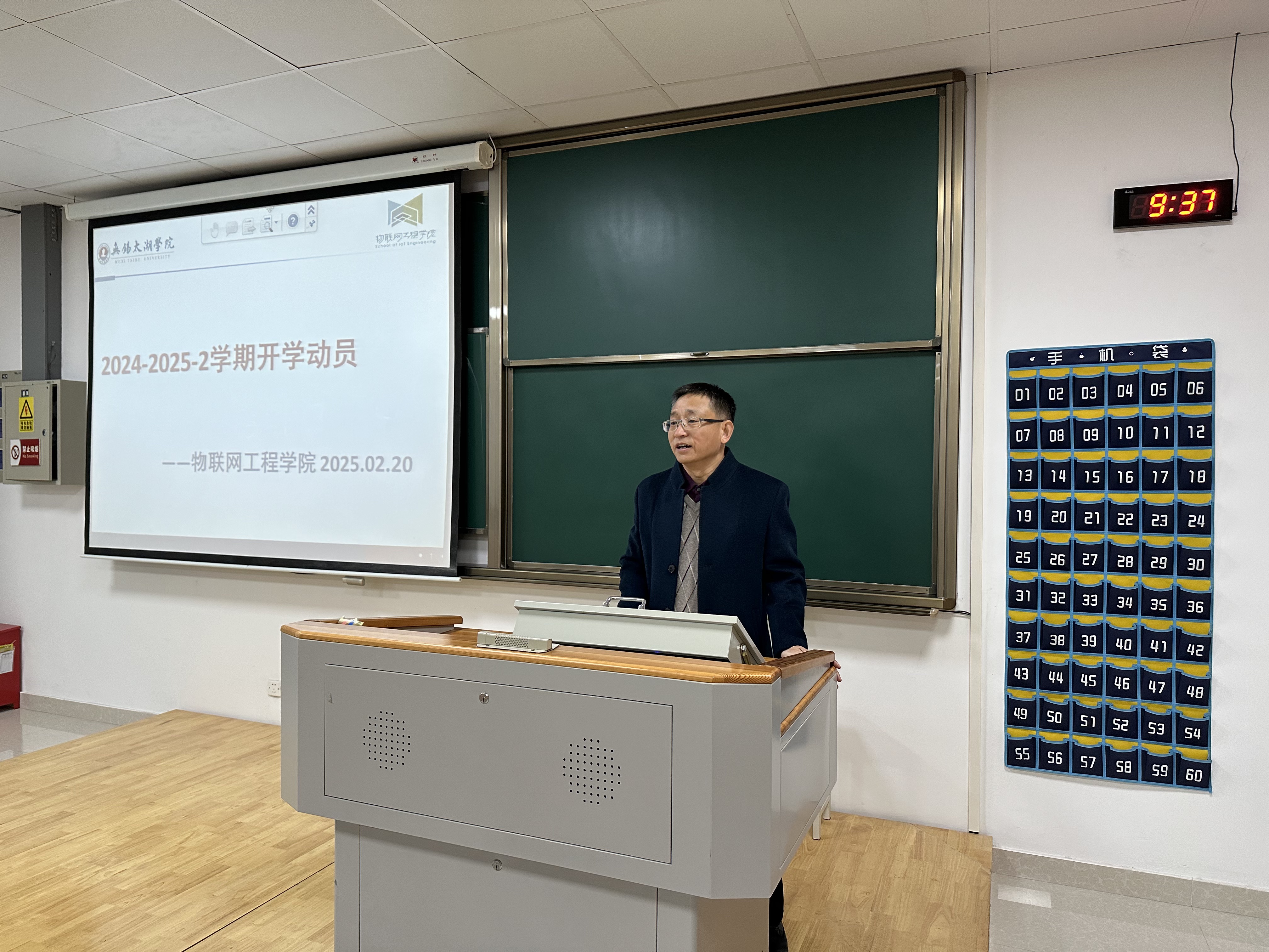 为统一思想、明确任务、压实责任,确保新学期各项工作开好局、起好步,近日,物联网工程学院召开新学期动员大会。学院常务副院长成本茂、党总支副书记沈峰、副院长王华君、副院长尹嵘出席会议,全体教职工参加。会上,学院领导班子成员依次结合分管领域,对新学期重点工作进行全面部署与安排。首先,常务副院长成本茂全面部署新学期学院整体发展与行政运行工作,明确新学期发展目标与重点任务,统筹推进学科建设、人才培养、师资队伍、...