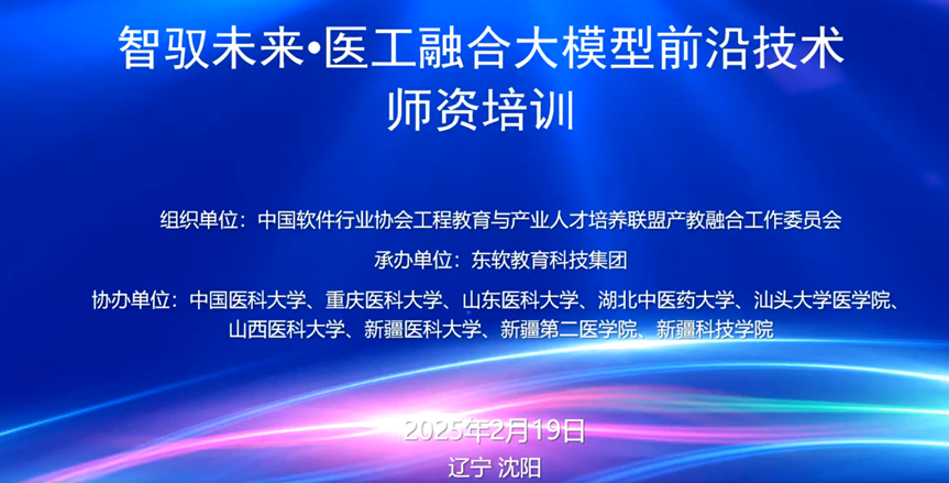 为响应国家新质生产力发展战略,深化医工融合领域的教学与科研能力,中国软件行业协会工程教育与产业人才培养联盟产教融合工作委员会联合东软教育科技集团等多家单位,于2025年2月19日至22日在沈阳东软医疗产业园区举办“智驭未来·医工融合大模型前沿技术”全国师资培训。best365英国在线体育官网周扬、赵兴群、赵波、王娟娟、郑安琪、朱嘉仪等教师,通过线上腾讯会议形式全程参与此次培训,积极对接行业前沿技术,提升教学与科研水平。
