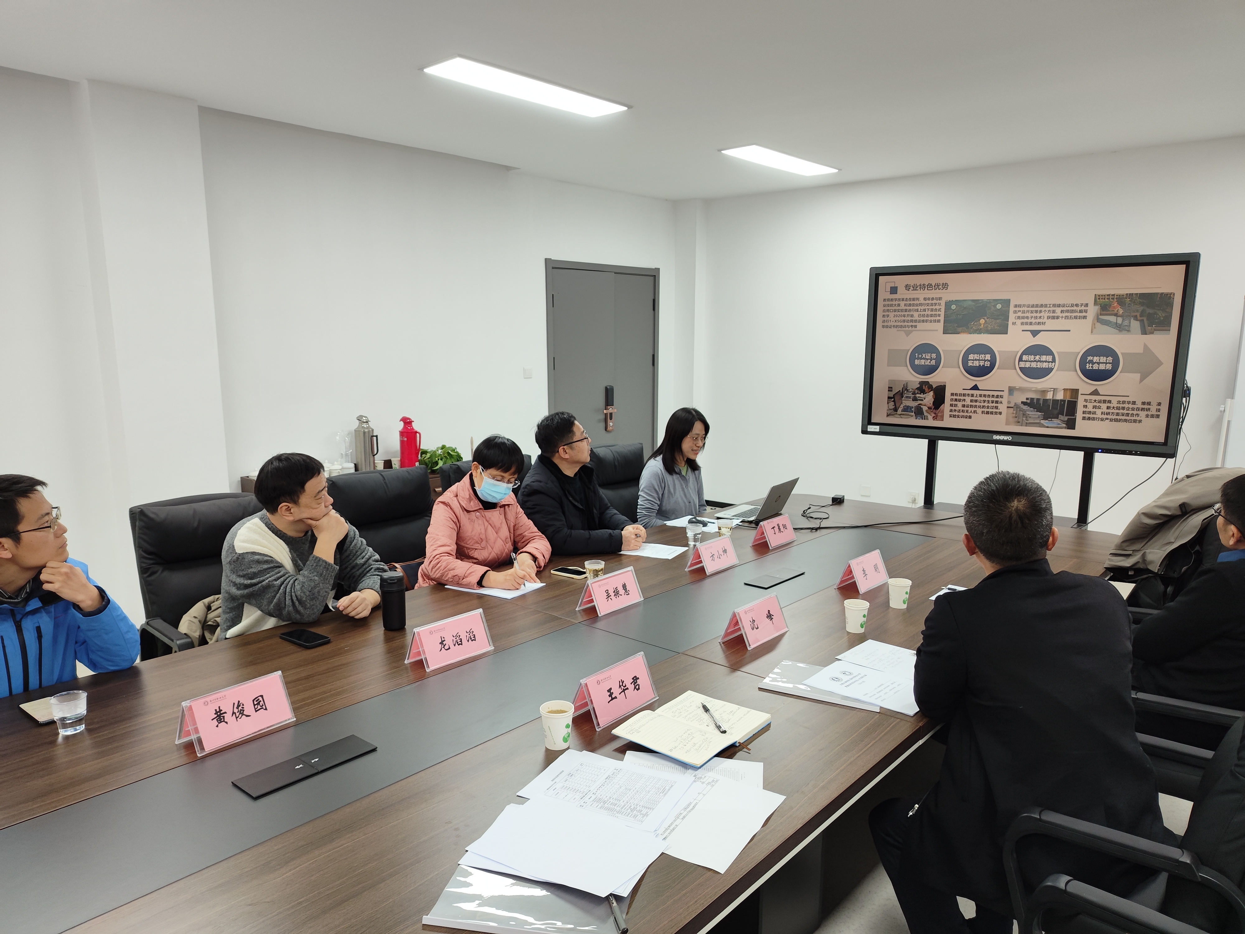 双方参会人员除best365英国在线体育官网物联网工程学院三位领导外,还包括扬州市职业大学电子学院吴振慧院长、方小坤副院长、现代通信技术专业丁晨阳主任、龙滔滔老师和黄俊园博士。双方代表共同探讨了3+2贯通培养的人才培养方案制定、学生转段要求和学生后续工作对接等问题,并由此达成了一系列共识。