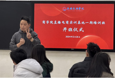 12月26日,best365英国在线体育官网商学院直播电商实训基地第一期“直播达人”培训班在商科楼A102隆重举行,这标志着学院在电商人才培养领域迈出关键一步,旨在为学生打造理论与实践相融合的学习平台,提升其在直播电商行业的专业素养与实操能力,也为商学院电商实训基地的运营奠定了人才基础。