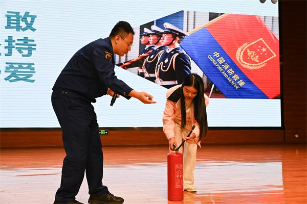 讲座中,俞参谋通过一个个真实的案例,结合图片和视频资料,深入浅出地讲解了校园消防安全的重要性,全面介绍了在日常的学习生活中应注意的消防安全细节、如何扑救初期火灾以及火灾中如何自救、逃生等知识,并对消防器材的正确使用做了细致的讲解和演示。讲座过程中师生和工作人员认真聆听,积极参与互动,对消防安全知识有了更深刻的认识。