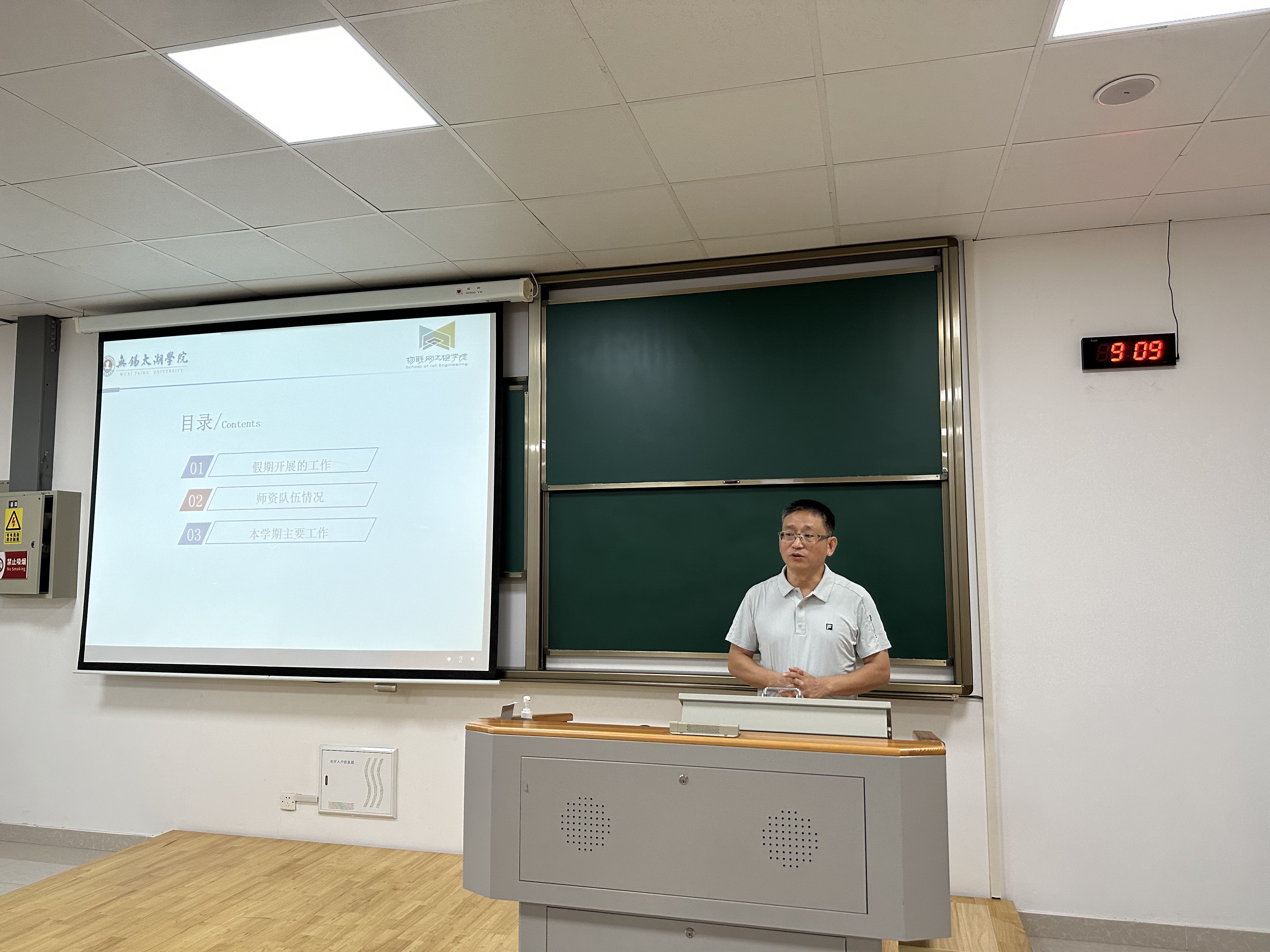 为更好地明确方向、统一思想、凝心聚力,确保新学期教育教学工作有序、扎实、高效地开展,物联网工程学院于9月2日上午9:00在工科楼A403教室召开2024-2025学年第一学期全体教职工大会。本次会议由学院党总支副书记沈峰主持,学院领导班子成员及全体教职工参加会议。