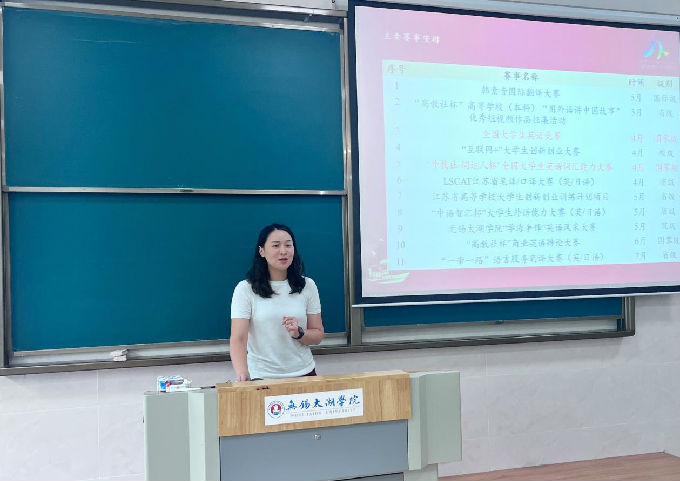 随后,吴院长介绍了了上半年竞赛的获奖情况,其中全国大学生英语竞赛我院学生荣获特等奖,取得重大突破,并展示了今年下半年将举行的竞赛,希望在新的学期教师们可以向同学们讲述更多更详细的关于竞赛的知识,帮助学生获得更好的成绩。然后,吴院长讨论了大四学生的就业单位,着重强调一些专业已经成为红牌专业。