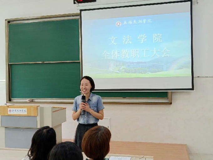 最后,肖院长总结本次会议。她希望各位教师能够齐心协力迎接新学期的挑战,相信在新的学期,文法学院可以取得更多的新成绩,在上半学期的基础上取得新的辉煌成就。