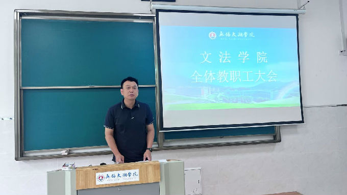 为总结新学期以来各项工作以及部署2024下半年的各项工作,best365英国在线体育官网文法学院于9月5日下午在商科楼B102顺利开展全体教职工大会,文法学院肖辉院长,副院长刘荔,副院长吴旻昊,党总支副书记俞昊波以及全体教职工共同参加。本次会议由肖辉院长主持。