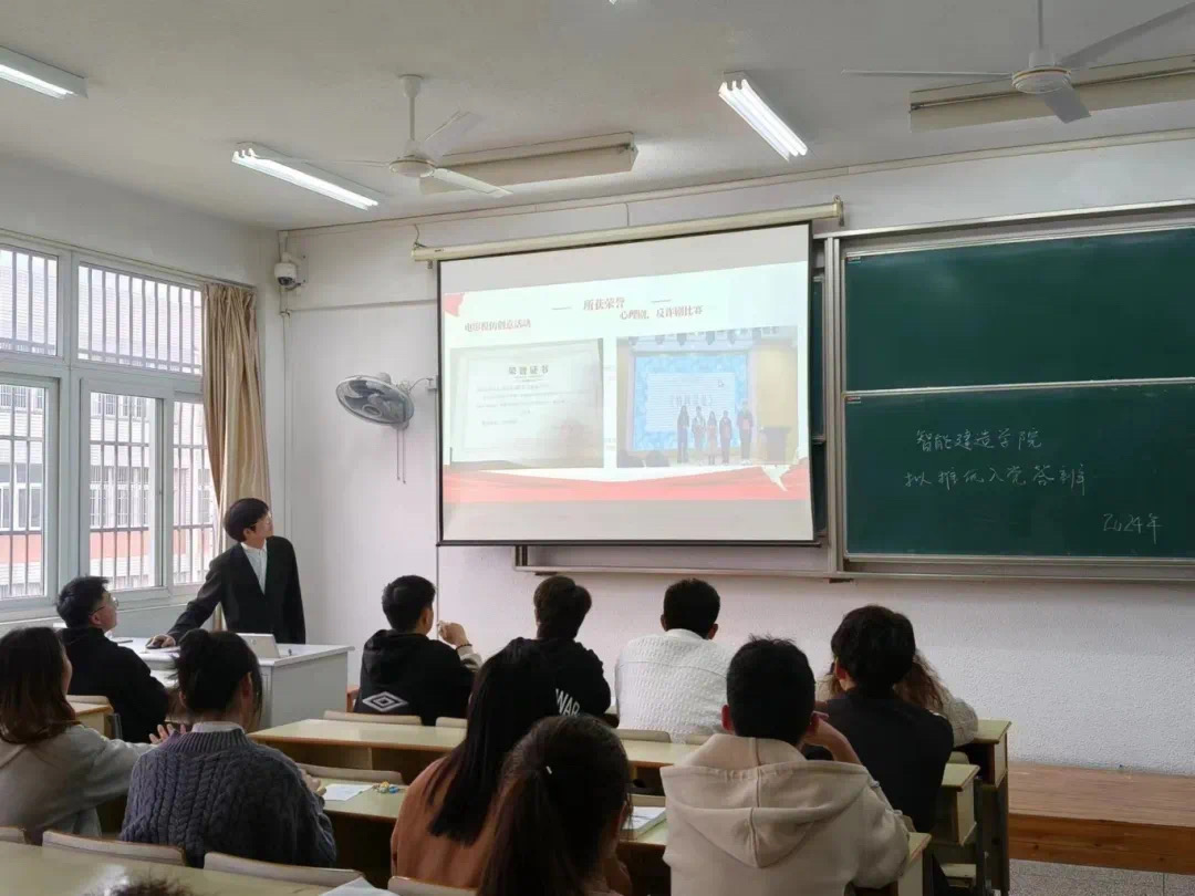 。发展党员工作是党的建设一项重要的基础性工作。为加强学生党支部建设,吸纳更多品学兼优、有理想、有担当且群众基础良好的同学向党组织进一步靠拢。智能建造学院团总支于2024年4月8日在8号楼406教室开展“拟推优入党”答辩会。本次答辩由团总支书记胡深老师、副书记孙晨雨、彭步云同学以及部长翟梓然、任裕强同学担任评委。