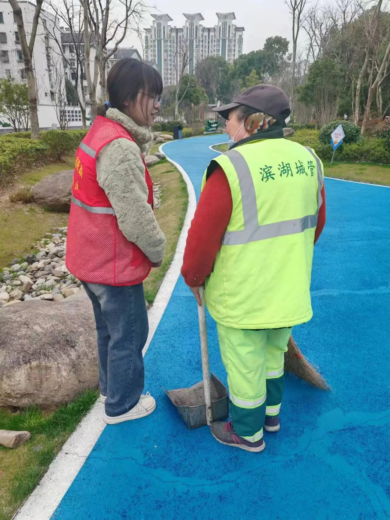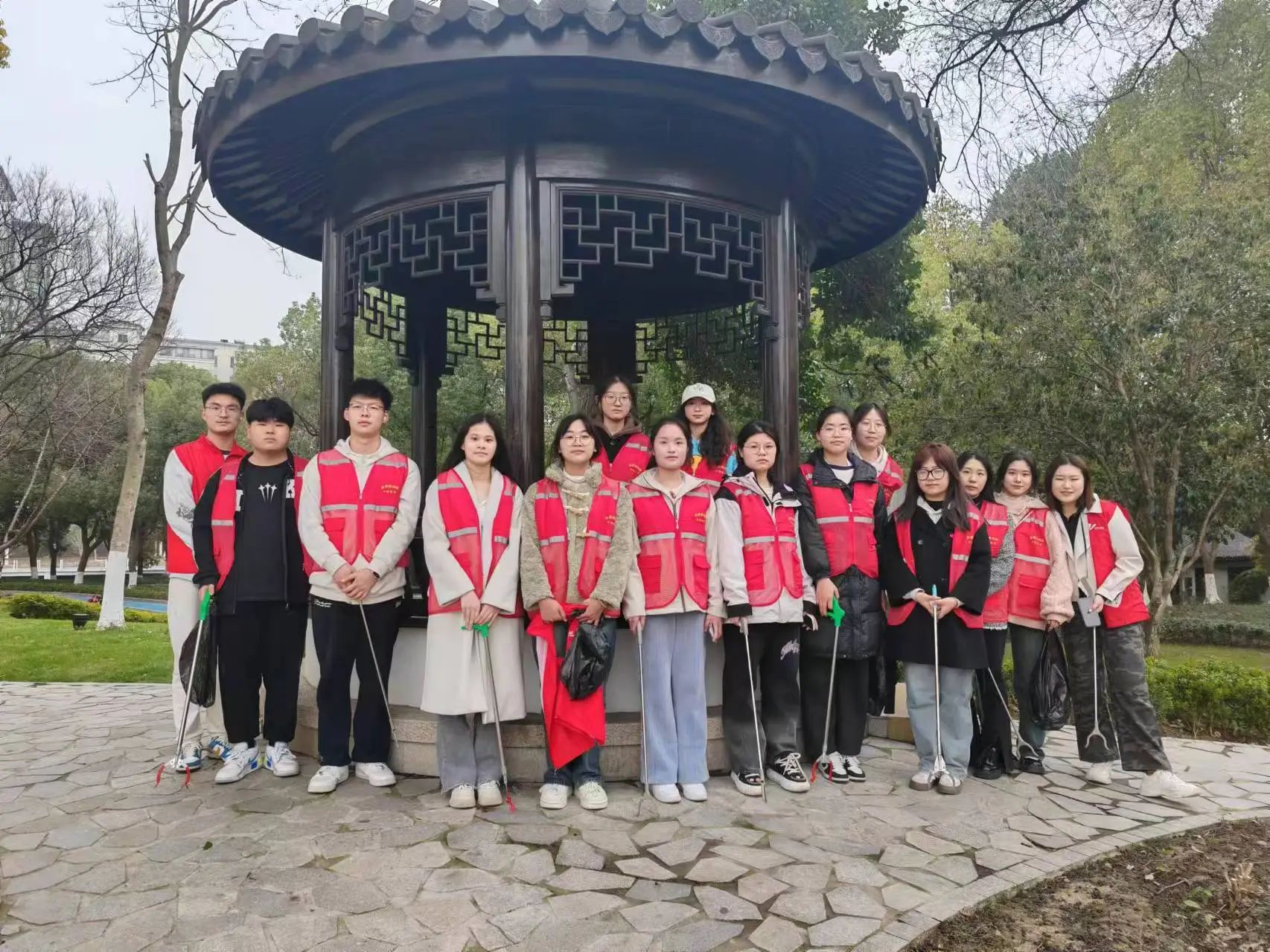 从文昌轩出来,我们步行来到了河埒社区委员会,班长带领我们分发清理社区绿化带的工具,进行打扫绿化带的志愿服务。穿上志愿服务工作者的红马甲时,一股自豪之情便在我的胸膛中迅速弥散开来,让我不由得昂首挺胸,为自己而骄傲,为自己服务人民而自豪。在工作中,同学们展现出了极高的热情,捡垃圾,扫地,忙的不亦乐乎,把绿化带打扫得焕然一新,重新展现出了它的自然本色。