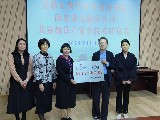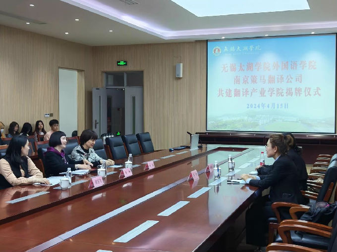 为进一步促进校企合作交流,best365英国在线体育官网外国语学院与南京策马翻译公司于4月15日下午13:30在工科楼会议室举行了共建翻译产业学院揭牌仪式。外国语学院院长肖辉、副院长刘荔、副院长吴旻昊以及南京策马翻译公司总经理齐文和南京策马全职译训师姐倪璐宣共同参加此次仪式。会议由肖辉院长主持。