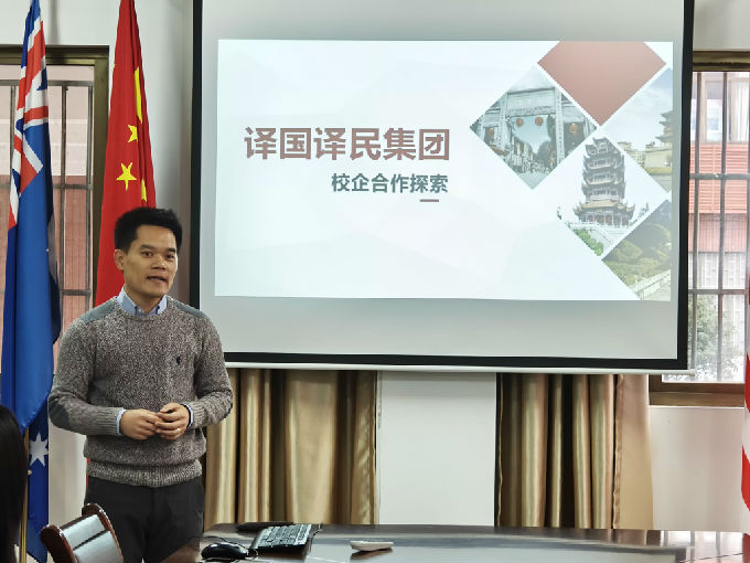 第三项议程,由译国译民集团高校事业部华东区域总监陈佐鹰介绍校企合作的具体内容。
