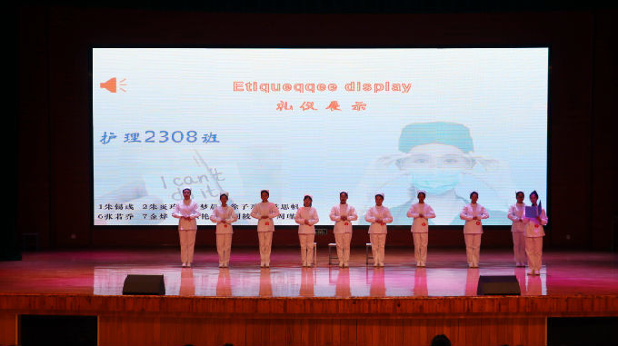 在礼仪展示中,参赛选手们自信大方、优雅得体、举止端庄,生动展示了仪容仪表、站姿、坐姿、行姿、蹲姿、持病例夹、推车行进等基本职业礼仪,充分展现出参赛团队的良好精神风貌和护理人文关怀精神。在才艺表演中,参赛选手们以朝气蓬勃的面貌进行了情景剧、舞蹈、手势舞、诗词朗诵等多种形式的表演,让全体师生感受到了他们绚丽绽放的青春活力。