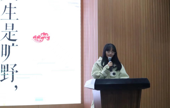 活动伊始,会计2202班的吴思琪进行经验分享。她用一段视频引出了“人生是旷野,不是轨道”的发言主题,并围绕“如何积极主动的学习”“如何树立正确的学习目标”“如何培养良好的学习态度”以及“如何充分利用资源”这四个方面展开详解,帮助同学们更清晰的制定大学的学习计划。
