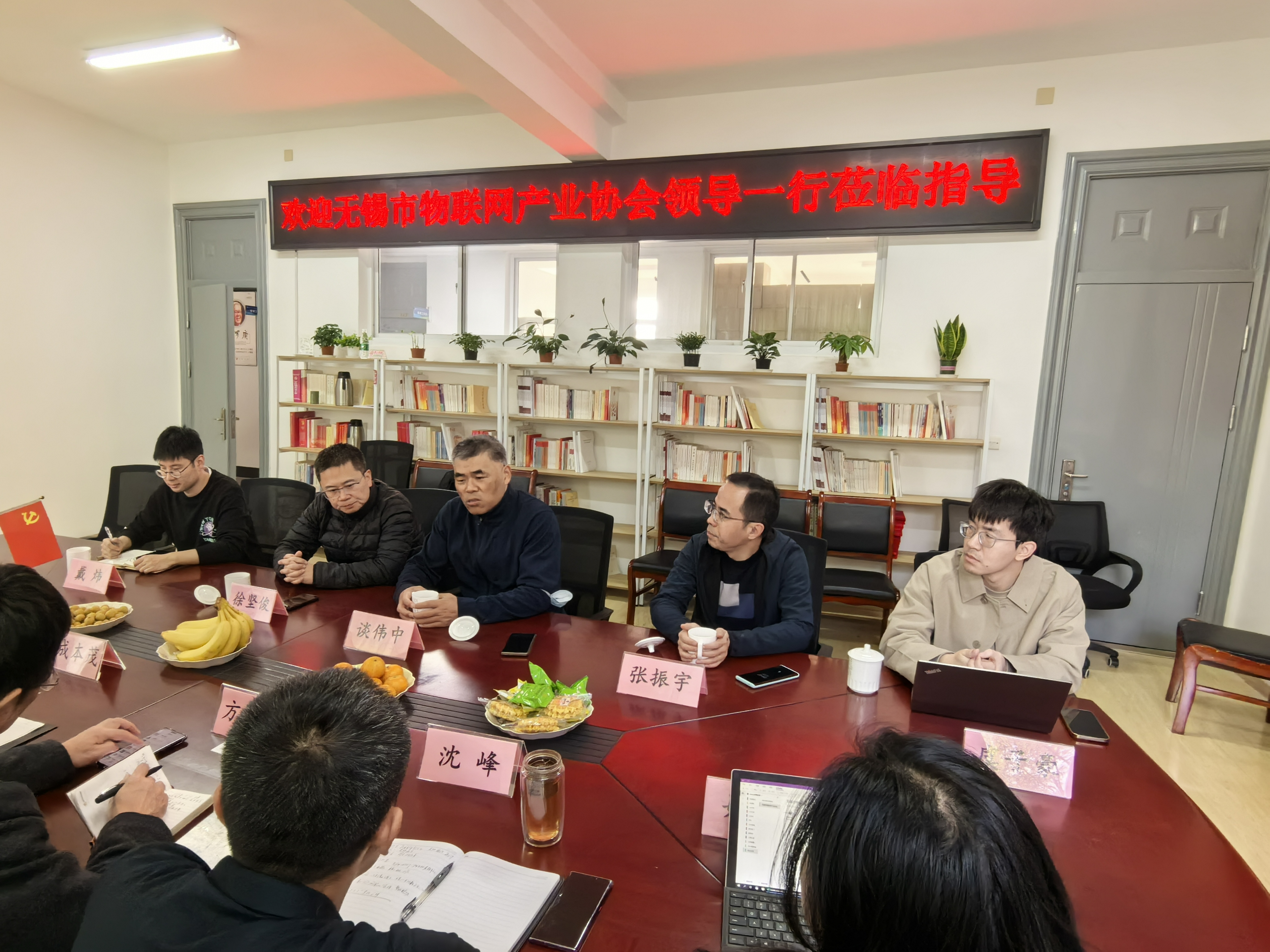 2023年11月15日上午9:30,无锡市物联网产业协会秘书长谈伟中、无锡市物联网产业协会会员部部长戴炜、无锡新思联信息技术有限公司副总张振宇、产品经理虞子豪、江苏聚为科技有限公司副总徐坚俊一行5人到学校物联网工程学院进行交流和指导。物联网工程学院常务副院长成本茂、教学副院长王华君、党总支副书记沈峰,以及校企合作副院长方宁生,中兴通信学院副院长李明,物联网工程专业主任姚湘参加此次交流。