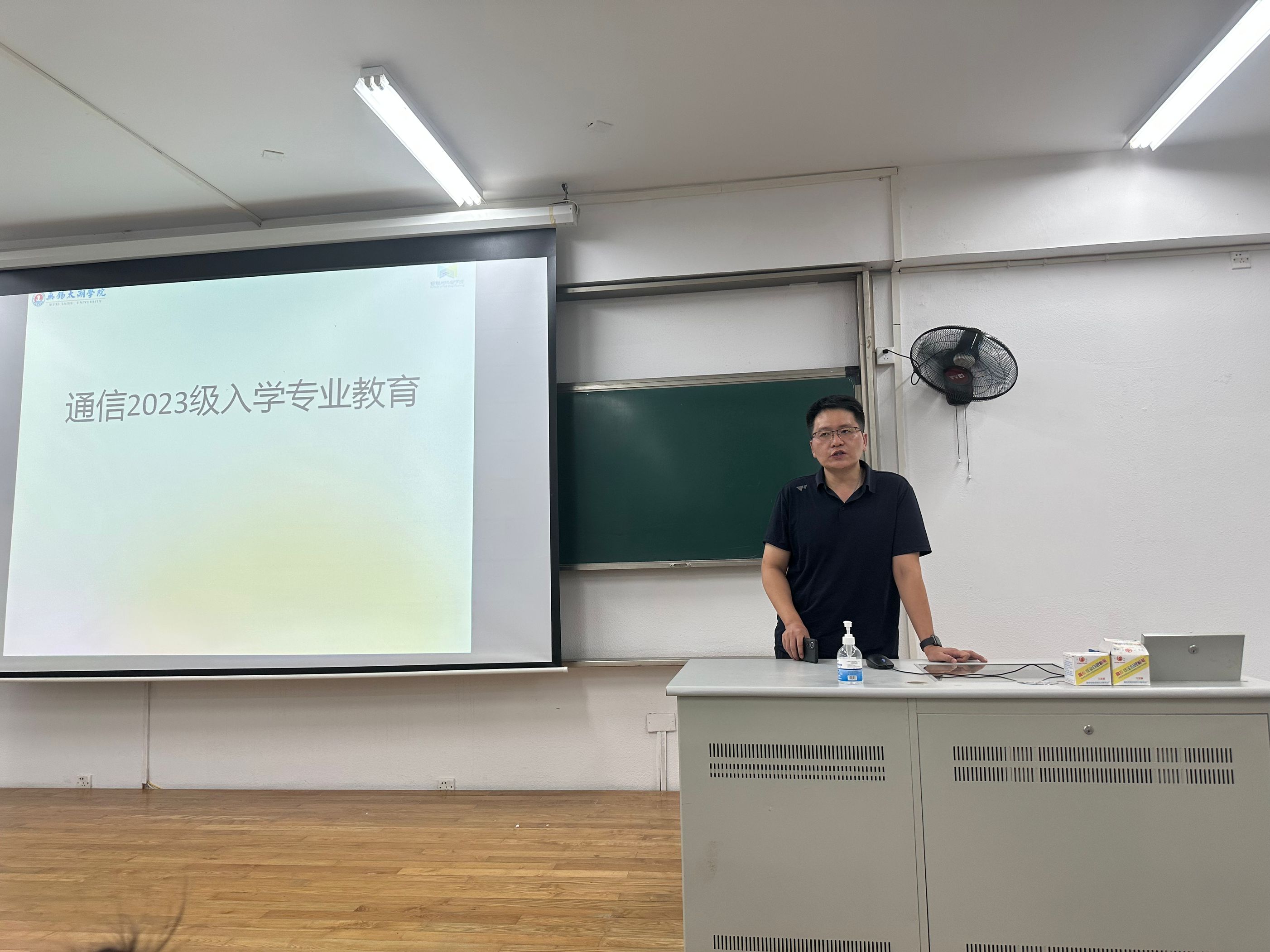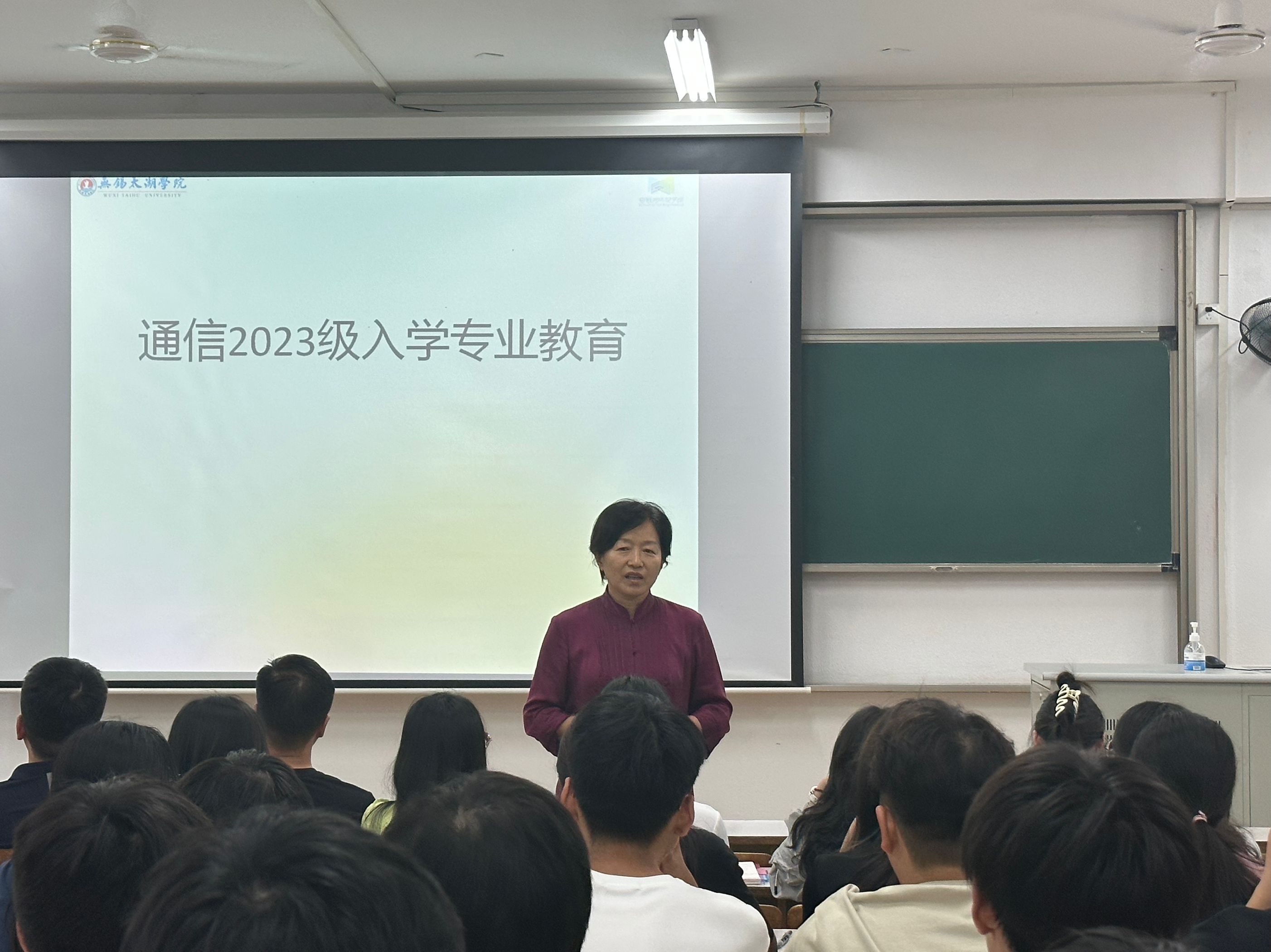 2023年9月12日18:30,物联网工程学院通信工程专业2023级全体学生和部分专业教师在教学楼7-119开展新生入学专业教育。