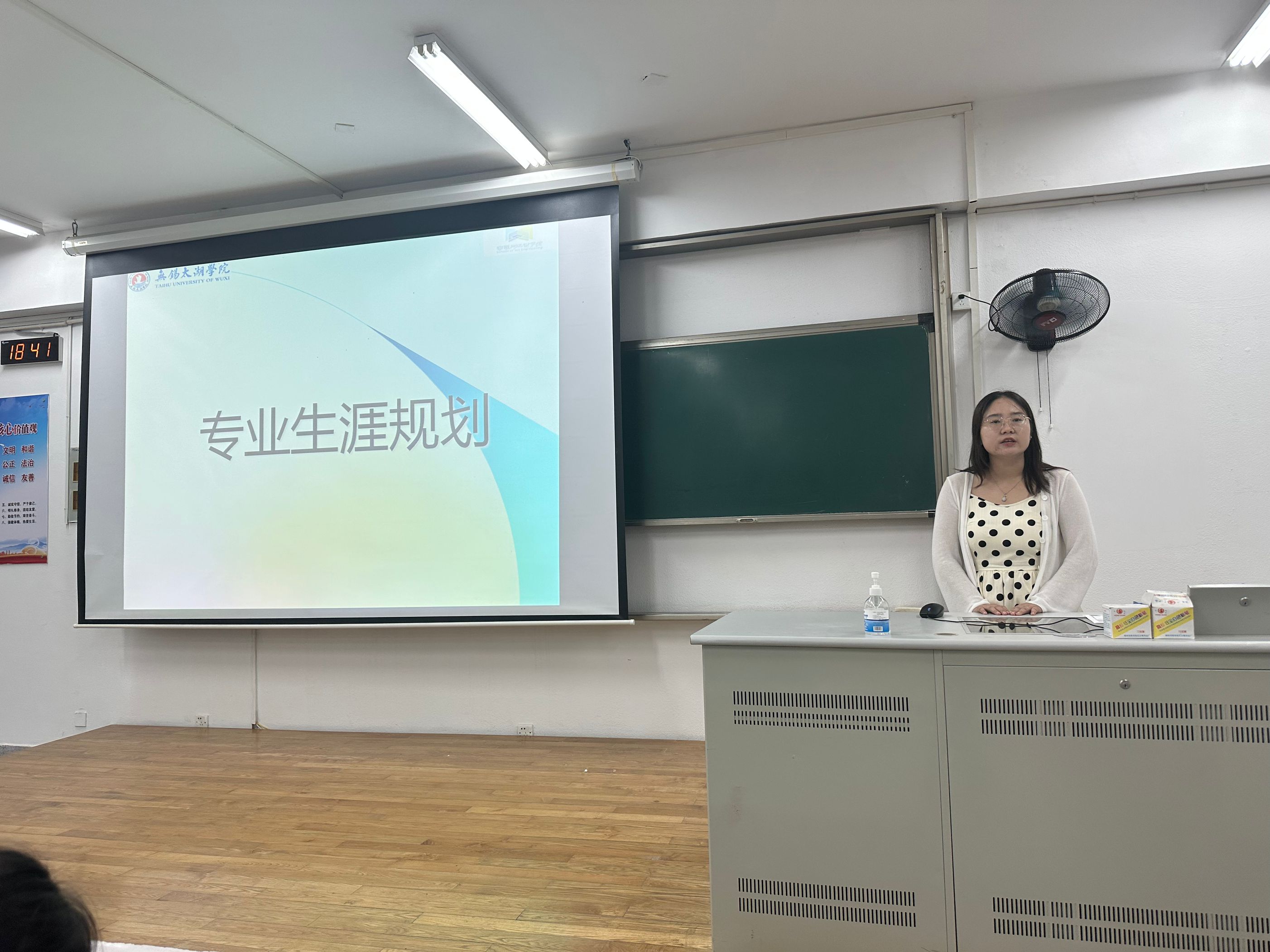其次,由牛慧敏老师向大家介绍专业生涯规划,向大家普及通信工程专业毕业生的职业情况,让同学们了解本专业的就业、考研及出国留学的情况,告诉同学们后面四年要学好专业课程,锻炼实操技能,多参加竞赛以及做好假期实习。