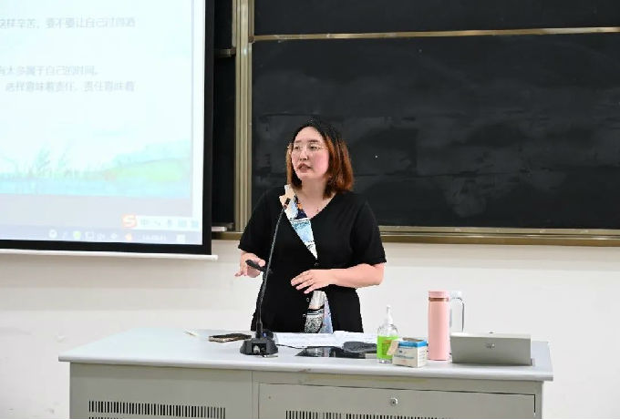 吴处长给同学们讲授的题目是《我的大学梦》,她从“立志、追梦、达志”三个方面与同学们进行了精彩的分享。她表示大学的学习目标非常重要,就像没有方向的船,什么风都不是顺风,需要同学们有明确的发展目标,需要同学们培养独立的能力,专注的力量和钻研的精神。吴处长还给同学们分析了大学每个阶段的重要内容,要求同学们学会管理自己、约束自己、发展自己。结合专业特点,吴处长希望同学们在校期间要加入社团、积极参加竞赛、志愿服务和实践活动,考取专业性技能证书,朝着“本科水平、一专多能”的人才培养目标奋勇前进。报告尾声,吴处长希望同学们加快融入校园生活,要爱班、爱校、爱国,要坚持运动、健康规律,要学到知识、掌握本领,在太湖的四年中遇见更好的自己。