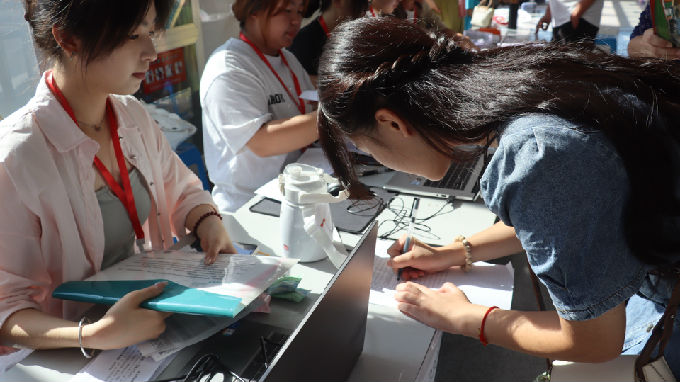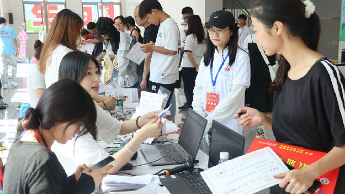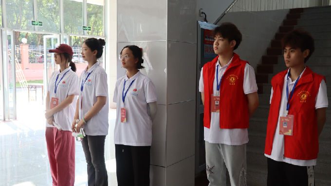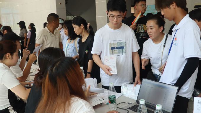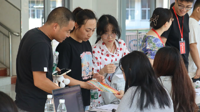 一大早,新生开始陆陆续续报到,志愿者们举着告示牌热情迎接新生萌娃们,耐心地向他们讲解报到流程、学校概况、专业介绍等,带他们办理入学相关手续,主动帮助他们搬运物品,同时向新生提出防诈骗注意事项。葱茏森郁的校园内,到处可见志愿者们忙碌奔走的背影。