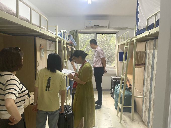 傍晚,健康与护理学院党总支副书记胡宇和辅导员走访学生宿舍,关心新生入学适应和内务等方面情况。