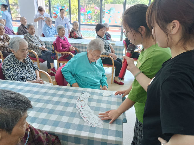 活动伊始,由养老院志愿者服务活动总负责人卢坤同学组织人员前往活动地点,分配各志愿者的工作。抵达颐乐居护理院后,志愿者们在工作人员的帮助下,有序带领老人们进入活动会场,并为其安排入座。志愿者还为爷爷奶奶们准备了精彩的节目。