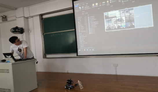 班会上刘老师首先简单介绍了本次班会的主题,接着由参赛学长和大家演示了手机视觉app遥控机器人抓瓶子,使用UG软件讲解了三维建模和机械装配的过程,使用嘉立创软件完成硬件电路的设计。
