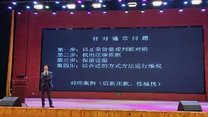 讲座还提到,当同学们遇到法律问题时应该按照以下思路:第一步:以正常价值观判断对错;第二步:找出法律证据;第三步:保留证据;第四步:以合适的方式方法进行维权。同时王律师针对反诈提出了几点建议:不要贪图小便宜;警察和司法机关不会进行线上转款;以家人、教师等进行网络转款,一定要多方求证。在这些一个个事件背后和反诈建议背后,我们深刻认识到法律是成文的道德,而道德则是内心的法律,每个人都要拾起法律的武器来保护自己。