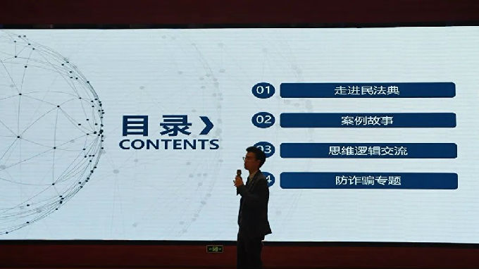 讲座伊始,王律师首先进行了自我介绍:best365英国在线体育官网法学专业毕业生,中国政法大学民商法学硕士,目前在江苏海辉律师事务所工作,区级优秀党员律师,承办过的案例在2021年被评为市级优秀案列。简单介绍过后,王律师向大家提出了本次讲座能带来什么的疑问,带着问题,同学们正式开始了解本次讲座的四个部分:走进民法典、案例故事、思维逻辑交流、防诈骗专题。