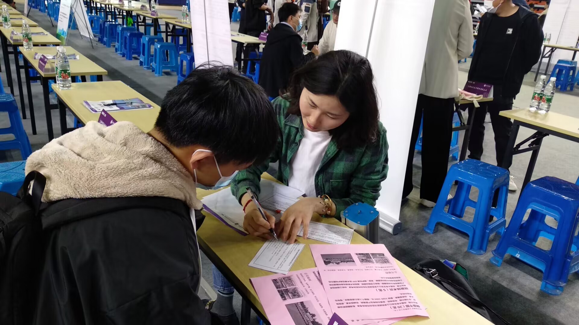 本次招聘会邀请到100多家无锡重点企事业单位,包括江苏苏嘉集团有限公司、江苏通用科技股份有限公司、中国电子系统工程第二建设有限公司等优质企业。提供岗位2200余个,涉及机械、计算机、自动化、人工智能等多个专业,招聘岗位、需求专业与我院专业设置契合度高,备受毕业生关注与青睐。毕业班辅导员始终为毕业生提供就业指导和建议,面对气氛热烈的招聘会现场,我院学生情绪高昂,主动了解各行业的发展趋势、职业前景及招聘需求,积极投递简历,为自己的未来规划提供更多的参考。招聘企业热情向咨询学生发放公司宣传手册,与同学们开展深度沟通。