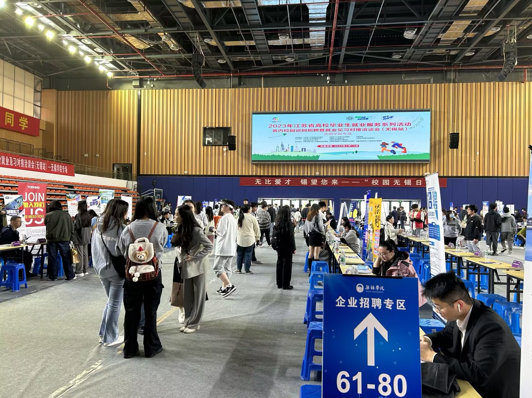 为贯彻落实党的二十大精神,落实就业优先政策,促进高校毕业生更加充分更高质量就业,4月14日下午,江苏省高校毕业生巡回招聘暨就业见习对接洽谈会在无锡学院体育馆成功举办。智能装备工程学院广泛宣传,积极动员大四毕业生参加,由辅导员杜薇老师带队统一乘车前往参加招聘会。