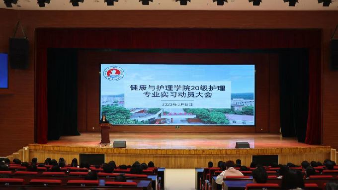 为扎实做好2020级学生实习动员工作,引导学生明确认识实习的目的和意义,为顺利进入各医院开展实习工作,健康与护理学院于2023年3月8日17点半在工科大楼一楼报告厅开展20级学生实习动员大会。