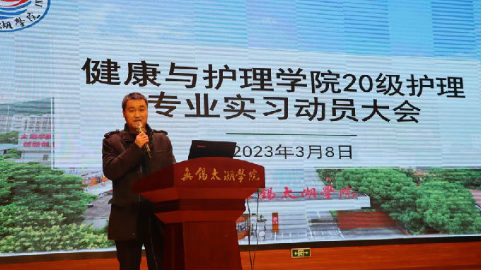 随后,由健康与护理学院党总支副书记胡宇做发言总结,他指出实习是护理专业很重要的一个环节,每位学生都必须认真对待,首先要选择好适合自己、能够为将来就业做好准备的医院,其次实习过程就是学习的过程,一定要学会在临床实习中处理问题的能力,累积临床经验,其次是保护自己,保护自身安全永远是放在第一位的,一定要多学习、多思考、多反思,为今后激烈的就业竞争做准备,未来已来,每位学生都要打有准备的仗。
