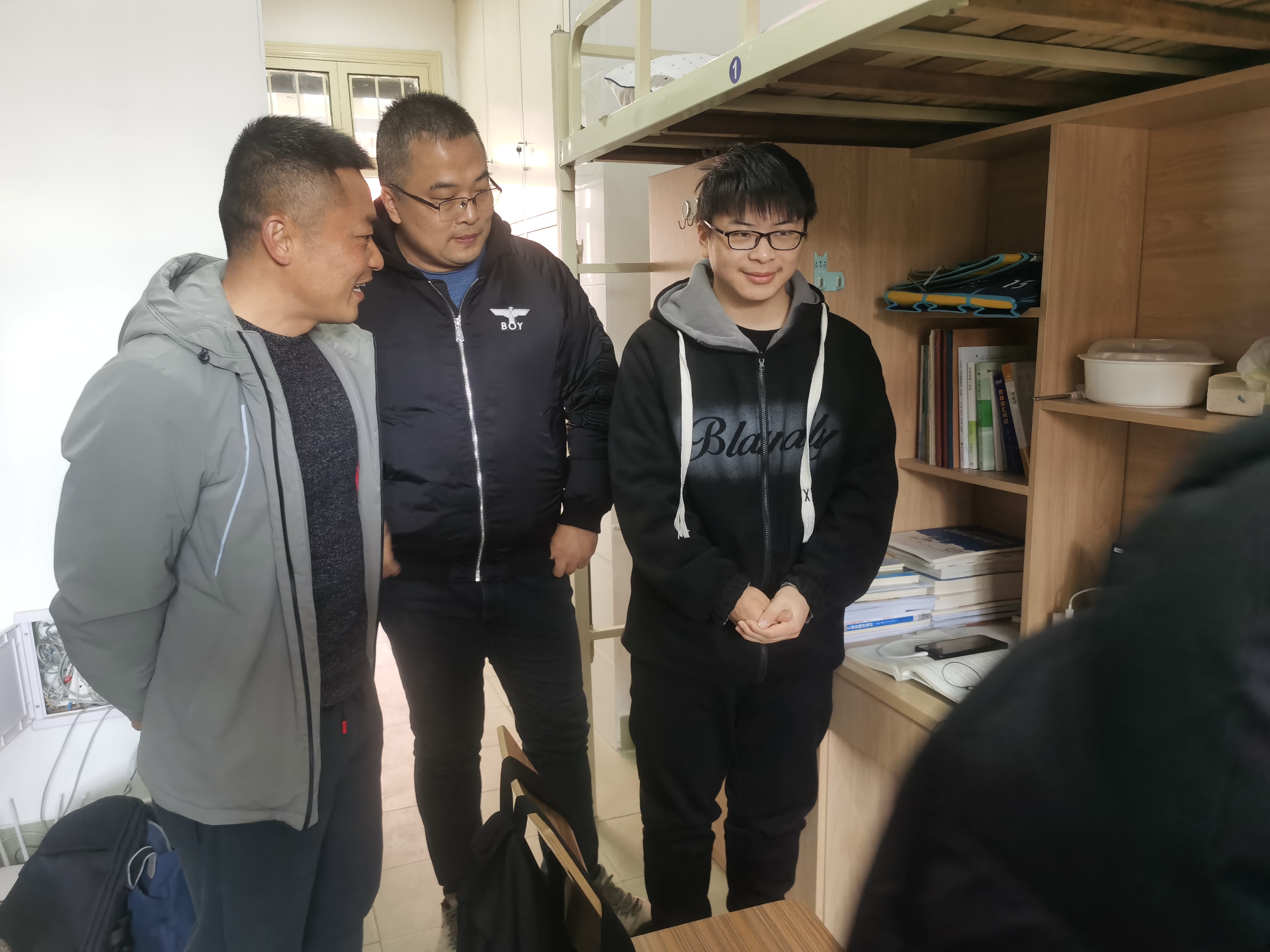 走访过程中,沈书记亲切地与同学们交流,询问大家对学校食宿是否适应、假期生活情况以及入学后的感受。王院长详细了解了学生线上学习情况、考试复习安排等,叮嘱大家做到自我约束,做好合理的规划,认真学习专业知识。辅导员们对同学们提出要注重宿舍内务卫生,提高防范意识,谨防诈骗,确保人身财产安全等。