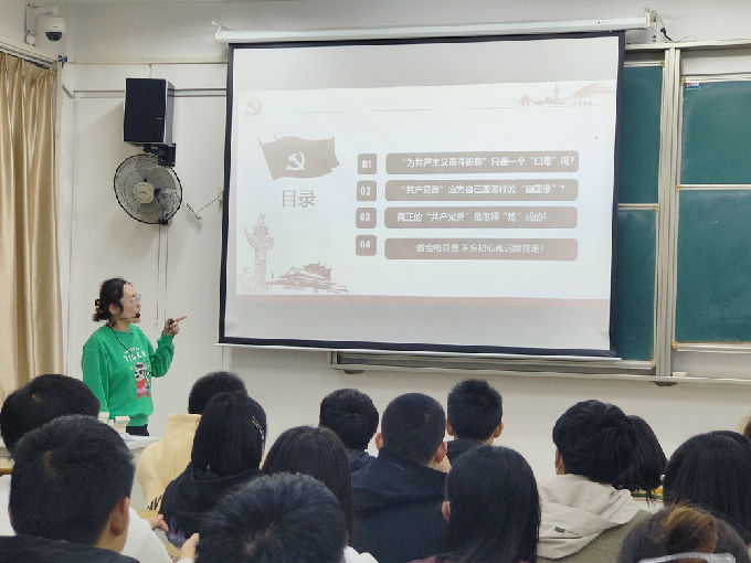 接下来,王莺老师希望各位入党积极分子要多加学习和阅读党章,并加以感悟和思考,在成为一名共产党员之前必须要严格按照党员的要求,规范自身言行举止。对于如何成为一名合格的党员,她引用《治学》中的一句话“器不饰则无以为美观,人不学则无以有懿德”。她鼓励大家在课余时间积极参加社会实践活动,在一次次的活动中,学习他人身上的闪光点和弥补自己的欠缺之处。课程最后,王莺老师再次号召大家要努力朝着一名合格党员的目标不断奋斗,不忘初心跟党走,努力学习充实自己。