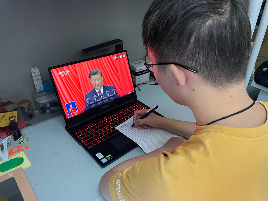 中国共产党第二十次全国代表大会于10月16日上午10时在北京隆重开幕,习近平总书记代表第十九届中央委员会向大会作报告。智能装备工程学院学生第二党支部组织全体党员通过网络、电视等媒体平台收看了开幕式直播。