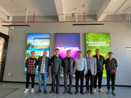参观期间,在天青元储周总的带领下,沈书记一行参观了公司的研发测试实验室和一线生产装备车间。同时,周总详细介绍了公司光伏储能等产品的运行原理、技术先进性、产品推广现状及国内外市场前景等。