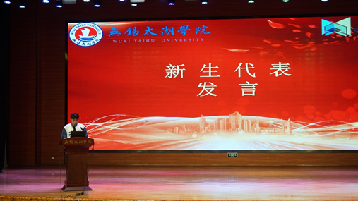 软工2201班于磊作为新生代表发言,他分享了自己入学以来的一些感悟,他号召同学们尽快适应新的大学生活,树立远大的奋斗目标。珍惜时光,在努力学习专业知识的同时不断丰富头脑、开拓视野,为理想与人生目标打下坚实的基础。