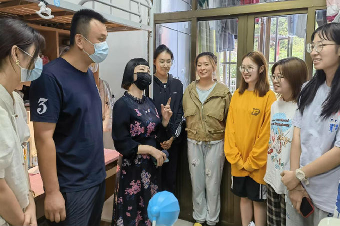 在走访过程中,肖院长细致关心学生的学习状态与上课情况,并表示了对同学们的牵挂,叮嘱她们即使身处学校,也要时刻注意疫情防控。同学们也积极反映着近期的学习情况与生活状态,并各自说出了未来努力的目标。