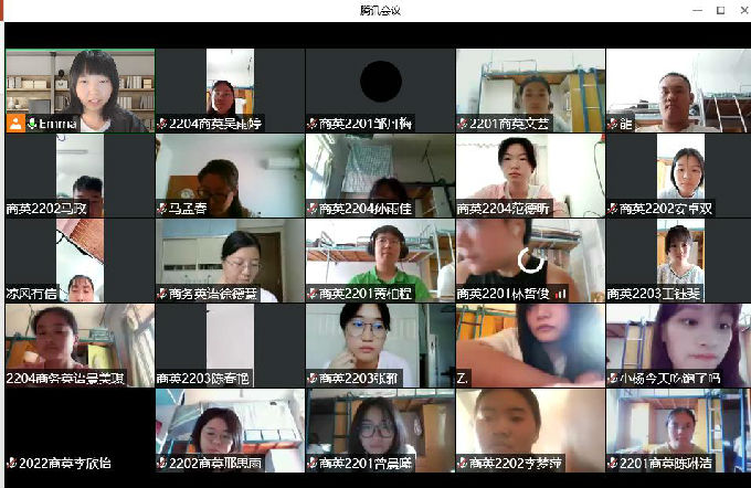 2022年9月7日上午9点,商英负责人马海滢,商英新生班主任徐德慧、马孟春,与商英2022级全体新生一起参与了商英专业2022级新生认知教育线上见面会。会议包含四个环节——欢迎新生、云合影、班主任寄语、新生专业认知。首先由商英系主任马海滢致欢迎词,欢迎商英2022级全体新生加入商英温暖的大家庭,然后大家通过在线会议平台云合影,接下来邀请两位新生班主任送上新学期寄语。最后新生专业认知的环节,从live by与live for的角度为大家解读商务英语专业与大学生活。接着介绍了商英专业的课程设置、学分学时等基本信息,并针对性地给出大学四年的生活学习的具体建议。最后送上寄语,希望大家大学的生活extraordinary!
