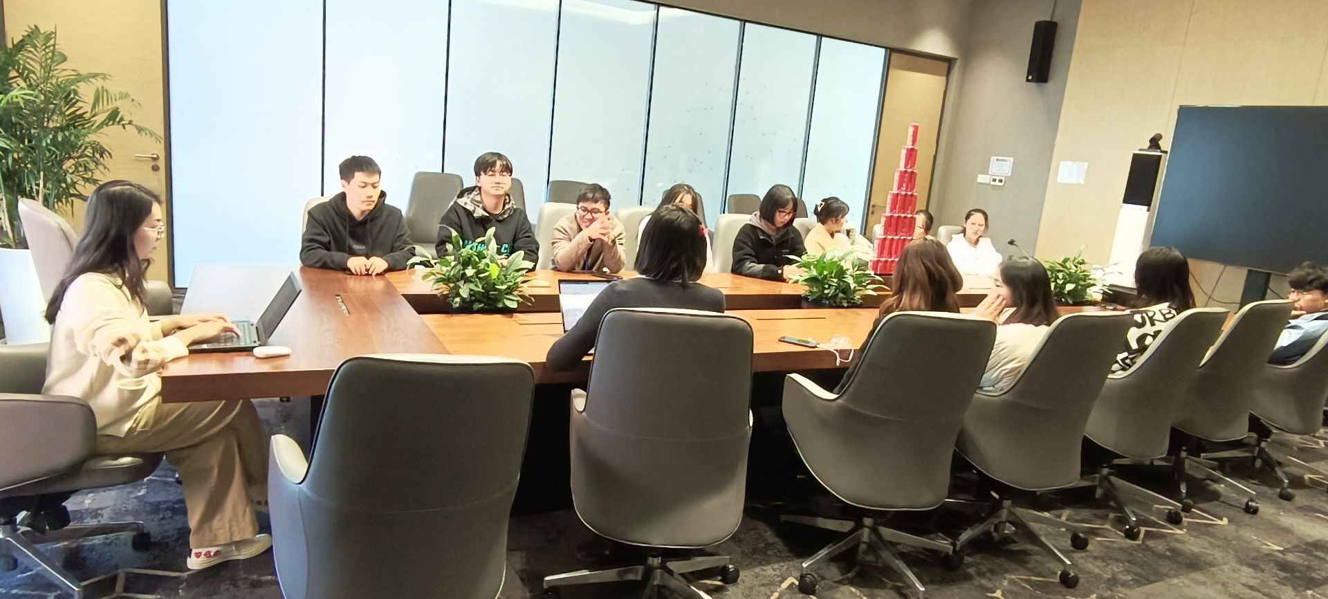在周老师的带领下,协会成员们第一次近距离接触到自己未来可能就职的岗位。此次参观中,成员们在感受华勤优美的办公环境和浓厚的工作氛围同时,也遇到了许多正处于实习阶段的学长学姐。