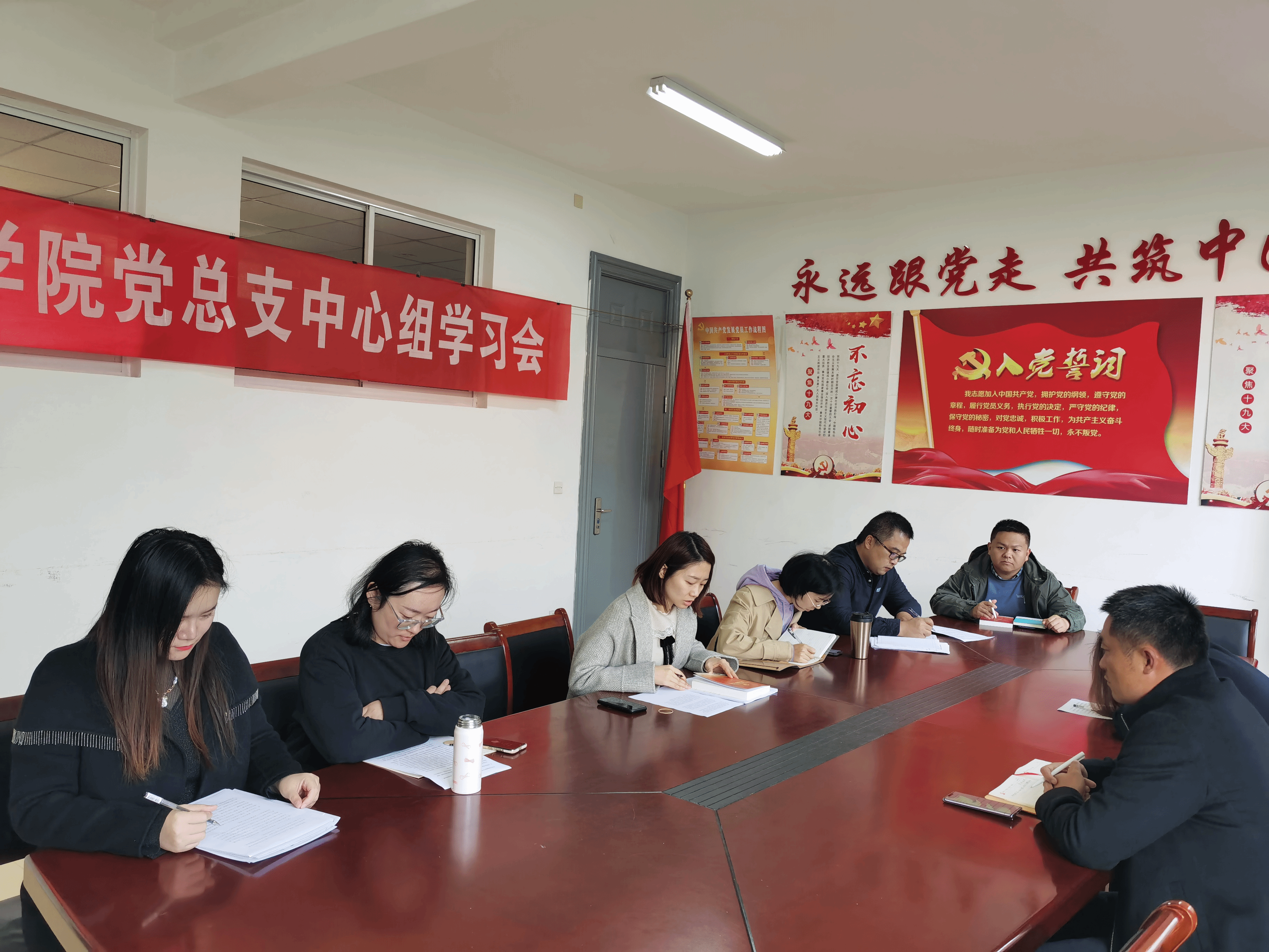 12月7日下午2点,物联网工程学院党总支中心组全体成员在13号楼310会议室召开学习会,集体学习《党的十九届六中全会< 决议>学习辅导百问》、省委教育工委《关于深入学习贯彻党的十九届六中全会精神的通知》精神、省委教育工委《关于认真学习宣传贯彻省第十四次党代会精神的通知》精神、省委宣讲团在无锡市宣讲党的十九届六中全会精神情况、江苏省委教育工委《关于开展高校思想政治理论课教师和辅导员队伍建设实地督导检查的通知》精神、无锡市委组织部《关于做好2021年度党委(党组)书记抓基层党建述职评议考核工作的通知》精神以及《全市党史学习教育综合评估办法》通知。
