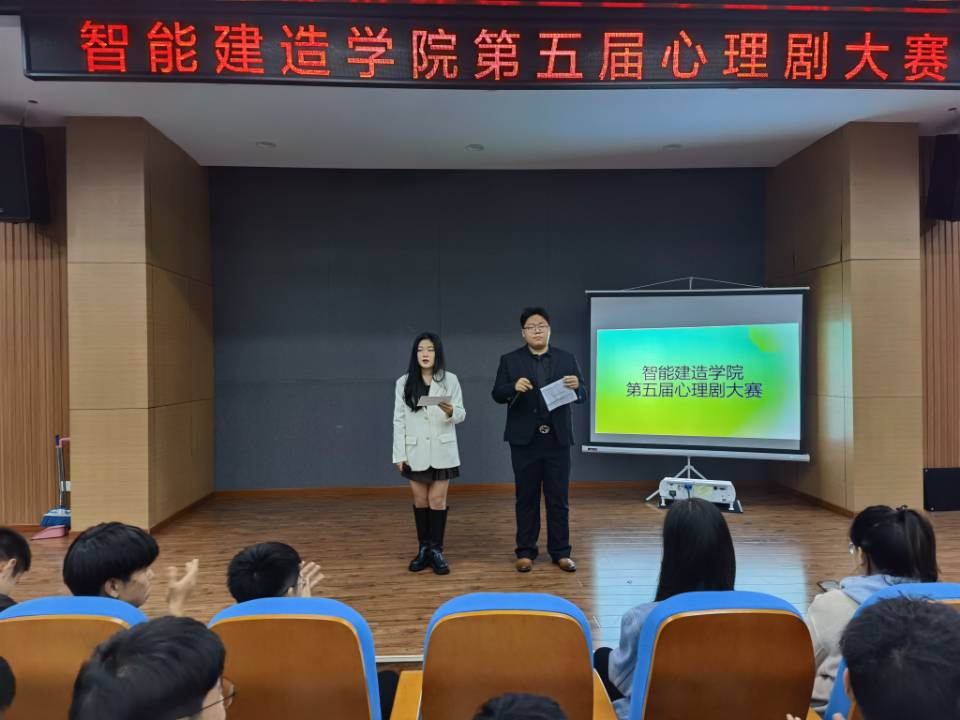 本次比赛有幸邀请到智能建造学院工程管理班主任高网芹老师、智能建造学院辅导员戎婷竹老师、智能建造学院辅导员钱紫云老师、20级心理委员代表作为评委,王嘉鑫同学和陈思婷同学作为本次比赛主持人,智能建造学院20、21级学生到场观看比赛。